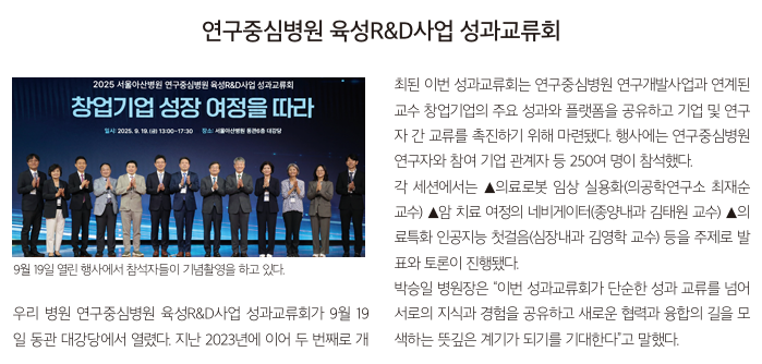[NEWS] 병원보 제758호 연구중심병원 육성R&D사업 성과교류회 (2025.10.01)