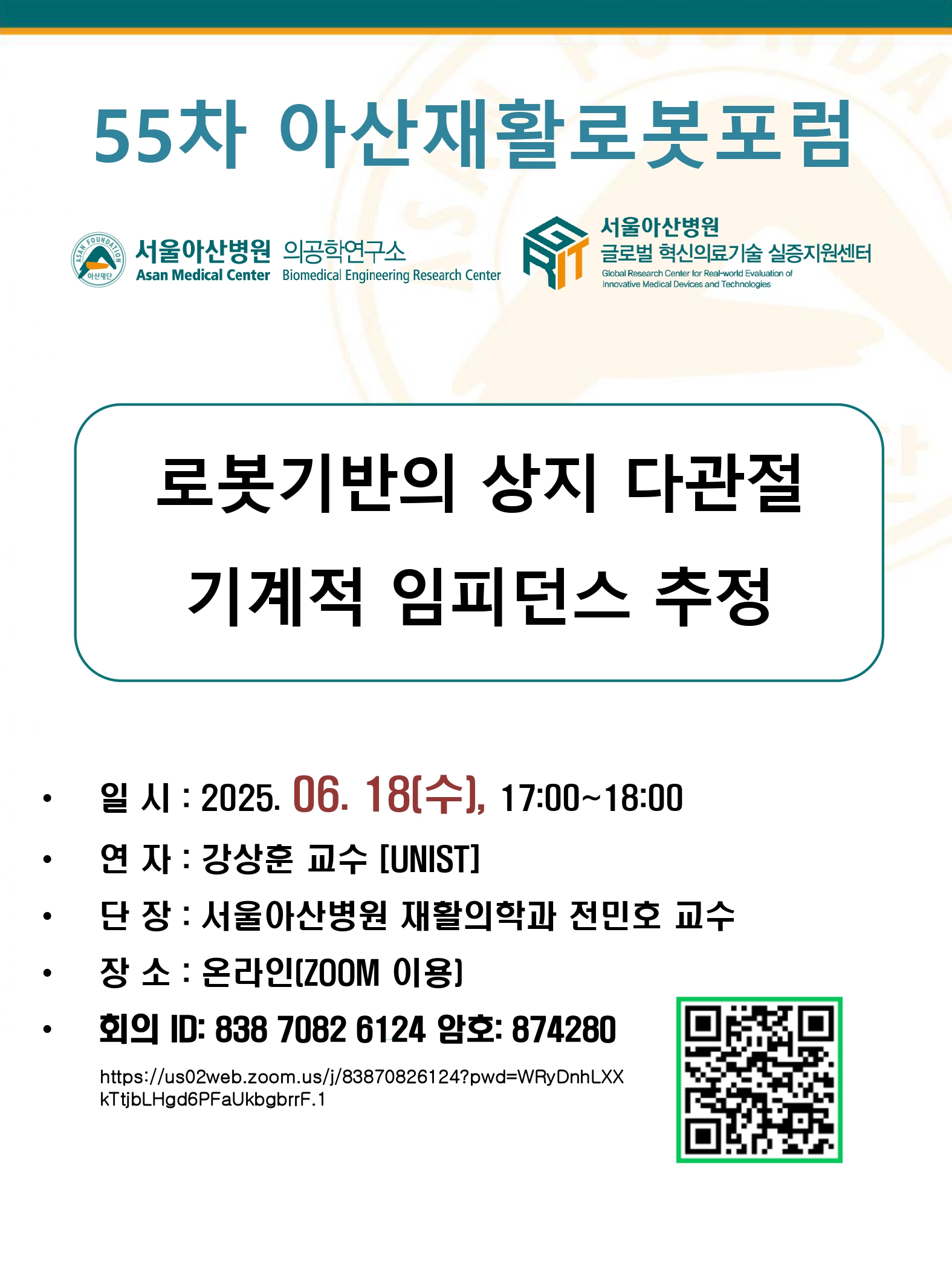 55차 의공학연구소 아산재활로봇포럼_6.18 : 로봇기반의 상지 다관절 기게적 임피던스 추정