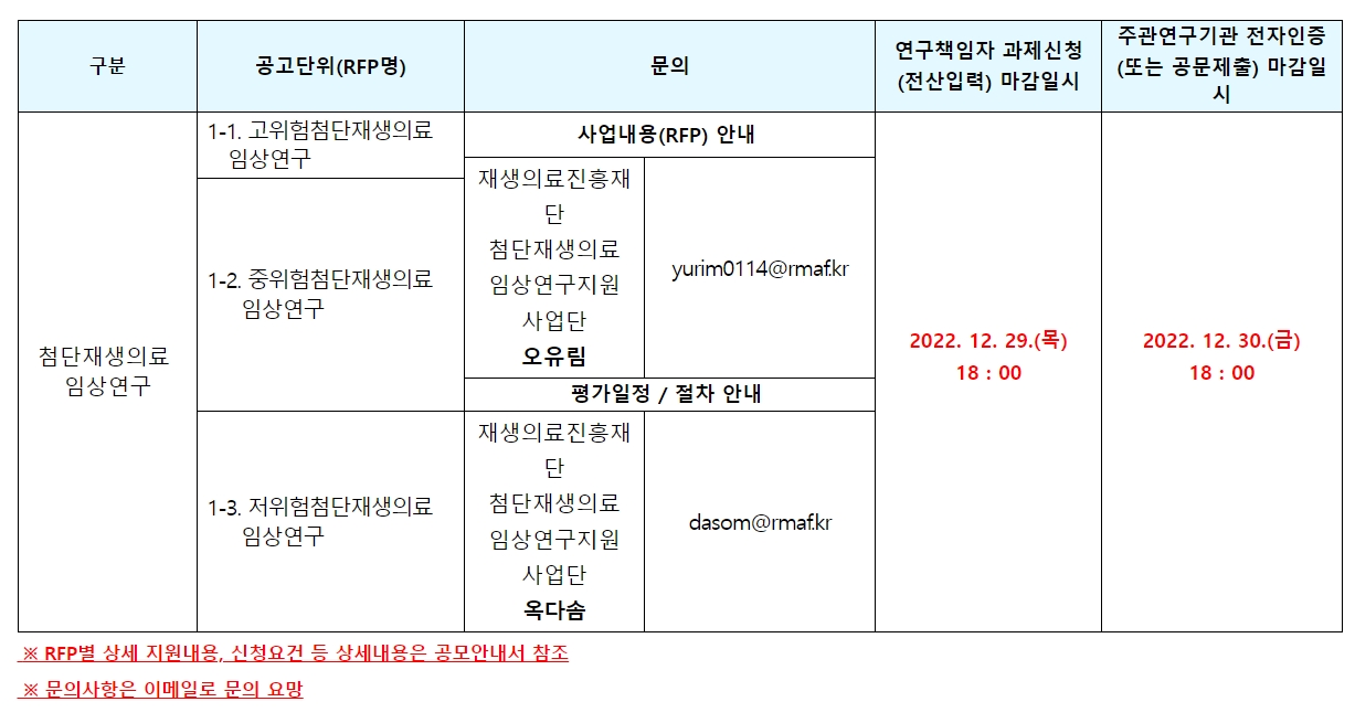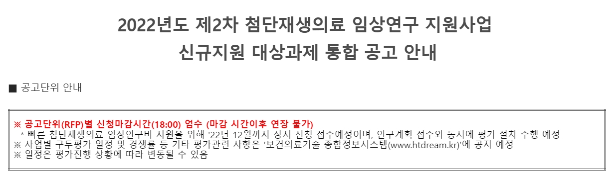 [수시접수] 제2차 첨단재생의료 임상연구지원사업 신규과제 공고문