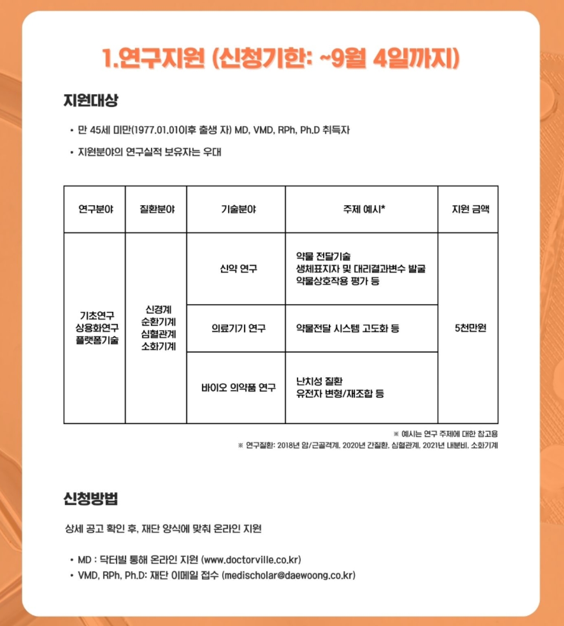 (재)대웅재단 신진 의과학자 학술지원사업 공모