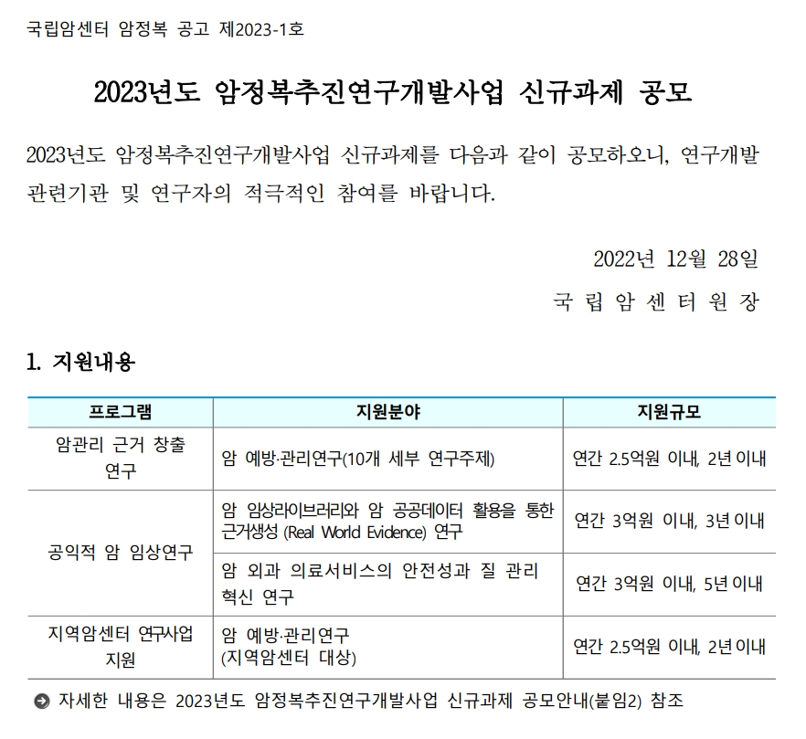 붙임2. 2023년도 암정복추진연구개발사업 신규과제 공모 안내.pdf