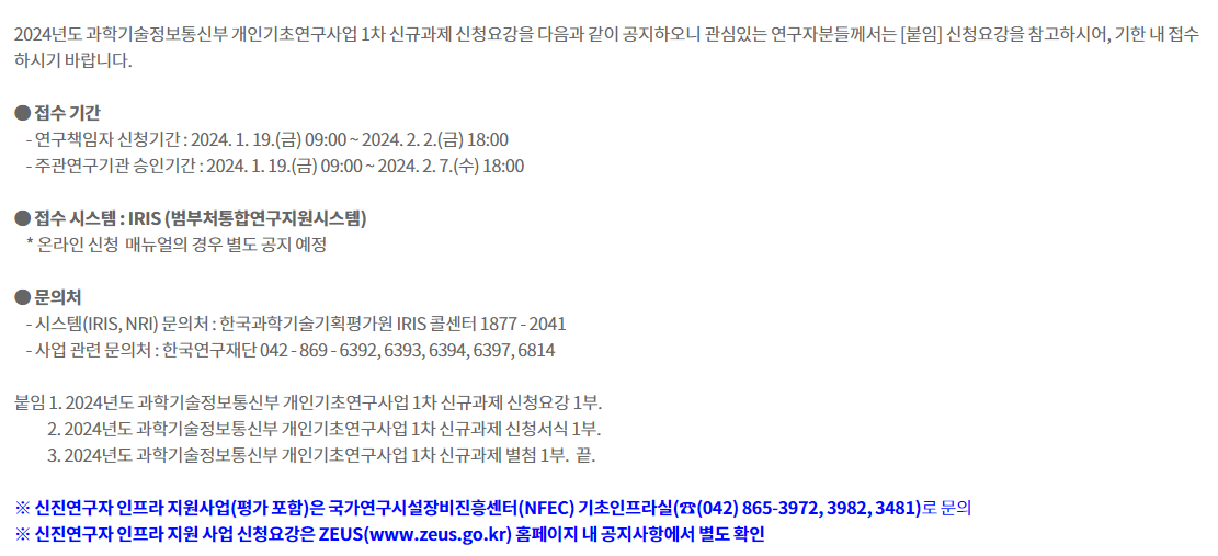 붙임1. 2024년도 과학기술정보통신부 개인기초연구사업 신규과제 신청요강.zip