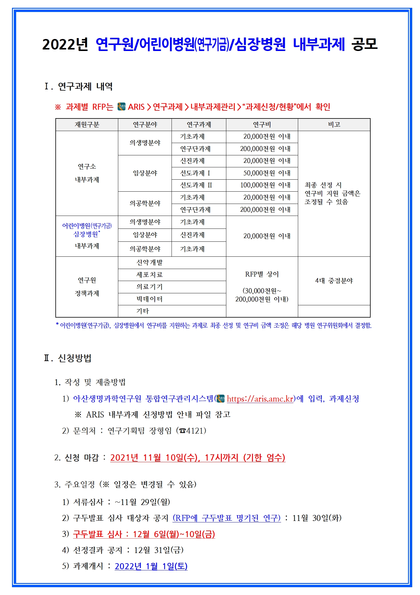 [~11/10] 2022년 연구원/어린이병원(연구기금)/심장병원 내부과제 공모