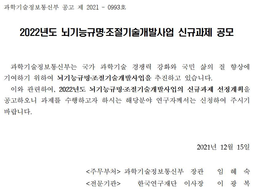 공고문 본문) 2022년도 뇌기능규명조절기술개발사업 신규과제 공모.hwp