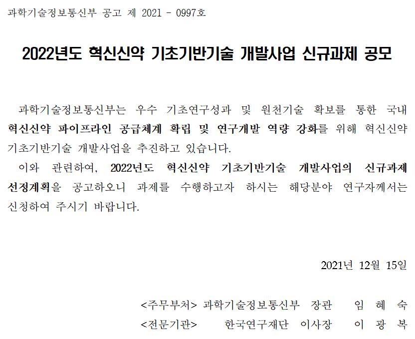 [홈페이지]2022년도 혁신신약 기초기반기술 개발사업 신규과제 공모 (공고문 본문).hwp